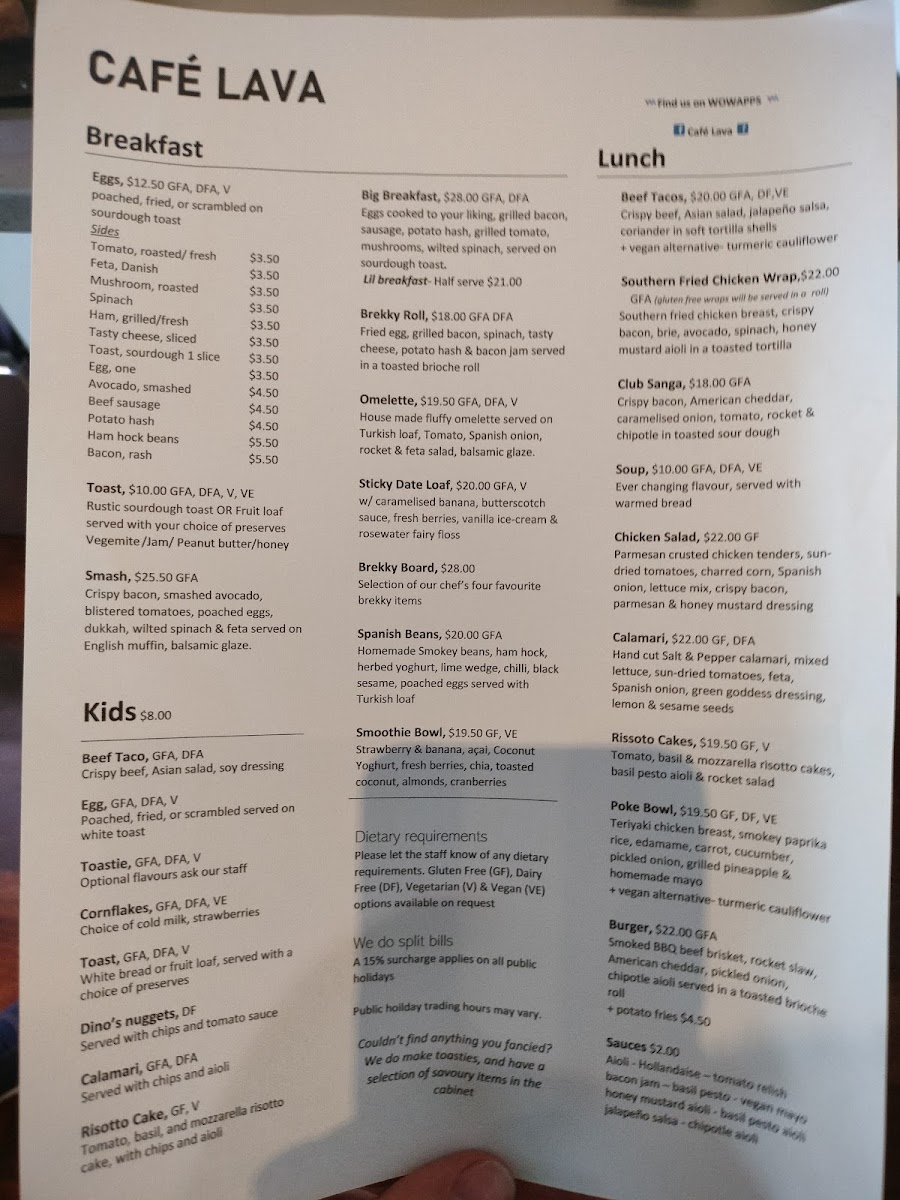 Overall, Cafe Lava's menu is a perfect mix of hearty, healthy, and indulgent options, ensuring that whether you're here for a quick breakfast, a family-friendly lunch, or a cozy drink, there's something for everyone to enjoy.